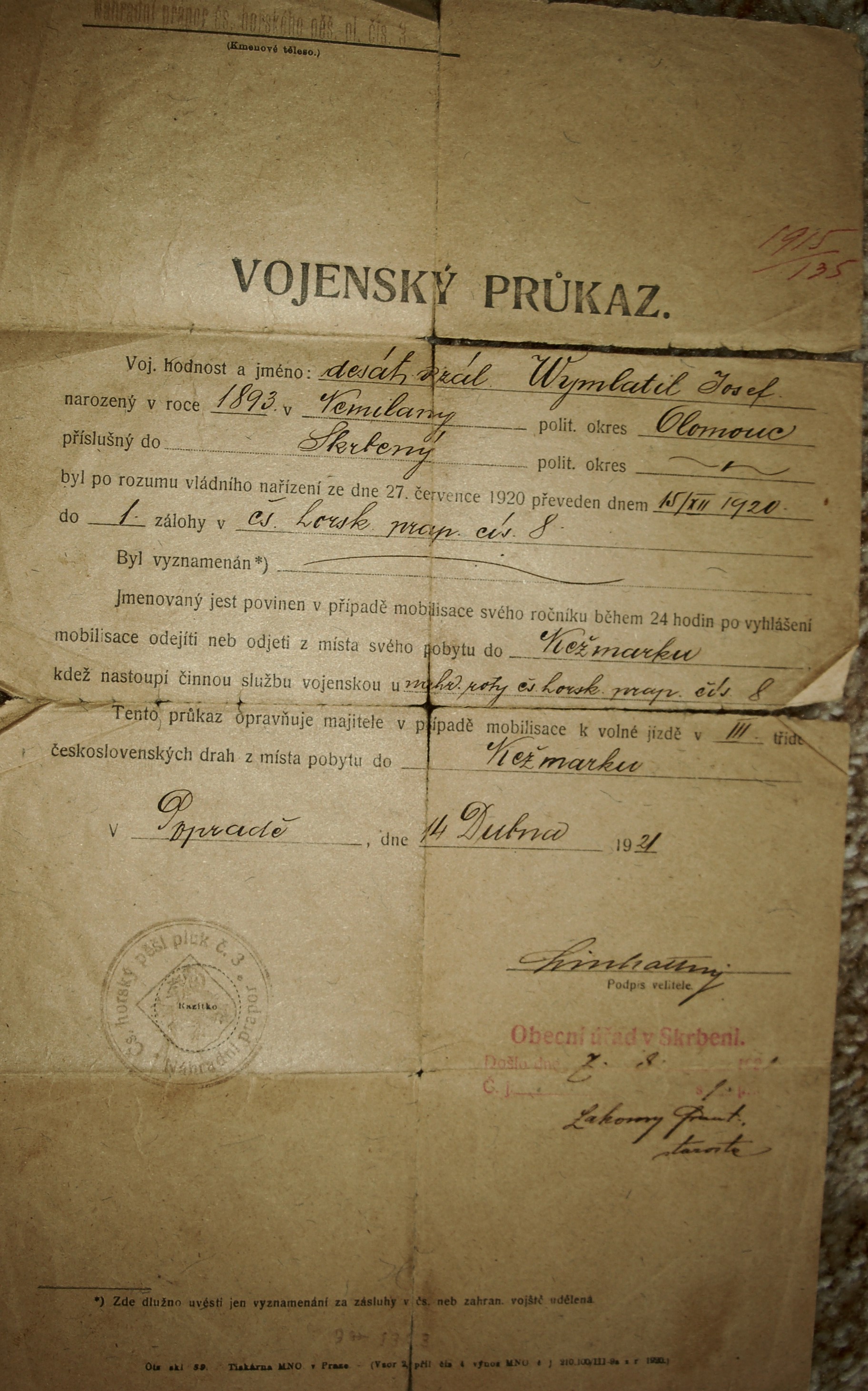 battalion Nr.8. In case of mobilisation, he had to be in town Kezmarok