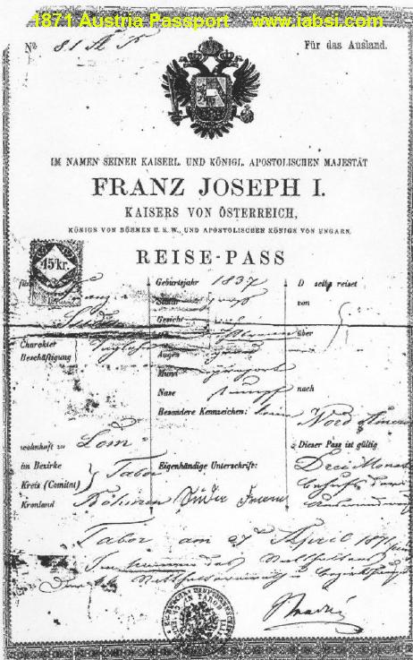 1871 issue of an Austrian Passport Credit and thanks to John Adam