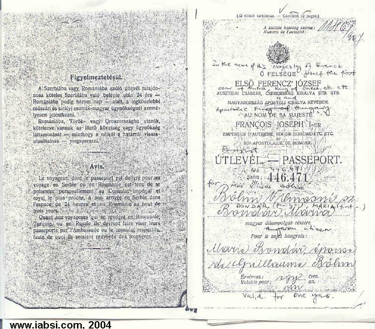 1907 issue of a Hungary Military Passport, Forgaras County (present-day Romania),
