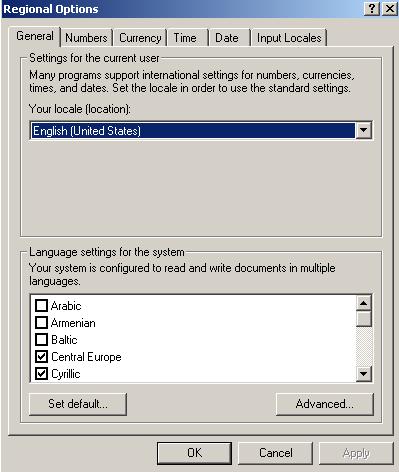 - Under “Language settings for the system” click check “Central Europe” if it is not already checked. (This installs, but does not activate the language sets) (Figure 4)
